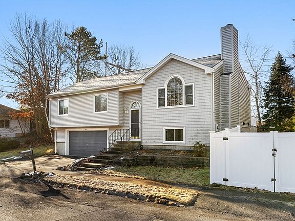 Welcome to 56 Nells Pond Rd! This lovely home features an Open floor plan with cathedral ceilings in the living room/dining room with wood burning fireplace with lots of natural light coming in. The kitchen features white cabinets, beautiful white quartz countertops and island.Spacious primary bedroom with full size bath and two nice size bedrooms.The lower level versatile space that can be used as a family room,home office or guest bedroom and half bath with washer/dryer. Slider off of the dining room leads to a nice size Trex composite deck and a screened porch for great outdoor entertaining. The unattached screened porch equipped with a ceiling fan and outlets. Nice size 2 car garage, 2 driveways for lots of convenient parking and storage shed.Close proximity to the Lynnfield line and access to major highways including Rt 1, 95 & 128 and Lynn Woods Reservation for hiking and biking.