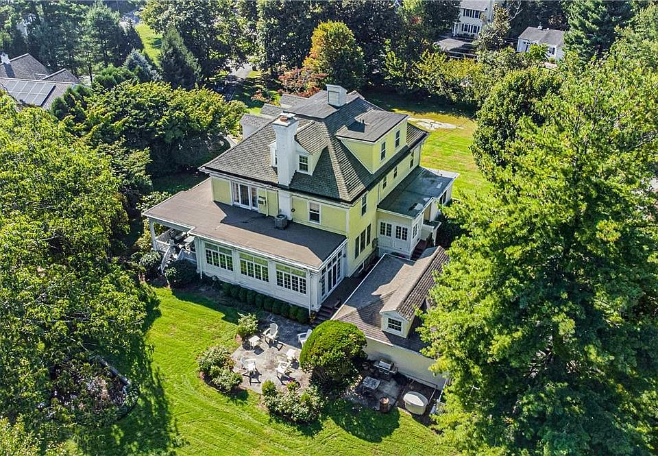 Tucked away atop a hill on 1.2 acres, this classic Colonial offers the perfect blend of original detailing, modern amenities & convenience. The property exudes privacy, surrounded by mature plantings & idyllic specimen trees. The circular driveway, accessible from both North St & Old Post Rd, guides you back to the iconic Porte Cochere & 2-car garage. The oversized front porch is picturesque w/its grand columns, stretching the full length w/space for multiple sitting & entertaining areas. This expansive 6,400+ sqft home offers versatile living areas across all 4 levels. Marble tiled front entry opens to a grand hall adorned w/10-ft ceilings, raised panel millwork & gleaming oak floors. The main level boasts an expansive LR w/fpl, DR, chef's kitchen w/breakfast room & FR/sunroom w/fpl, wall of windows & French drs allowing for easy indoor/outdoor living. Upstairs, retreat to the primary bdrm w/ensuite, fpl, WIC & pocket dr leading to adjoining bdrm w/full bath, also suitable for use as a home office or nursery. Down the hall you have 3 add'l bdrms & full bth. The 3rd floor, hosts 2 bdrms, full bth & multi-functional rm complete w/lg closet, sink & possible laundry hookup making it ideal for nursery or nanny quarters. Finished, walkout basement is the perfect space for entertaining all ages & features rec rm, lndry rm, wet bar & flex spaces for a gym area, TV or workspace area & full bth. Throughout the home, 3 wood burning fpls add warmth & character, while lg windows invite ample natural light. Meticulously updated and maintained. This stunning home is conveniently situated near charming downtown Rye, parks, schools, and other amenities. Additional Information: ParkingFeatures:2 Car Detached,