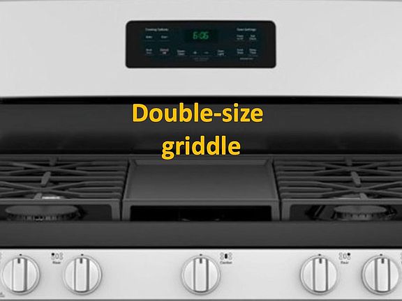 Includes: large stainless steel fridge, 5-burner gas stove (the 5th is a griddle), and dishwasher