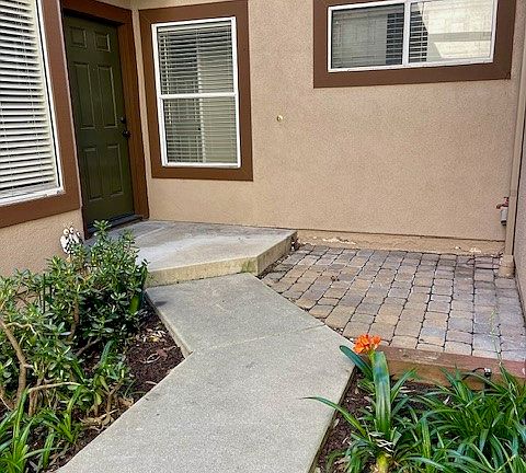 Beautiful upgraded unit with a rare oversized attached 2 car garage and large private patio that faces the greenbelt. Numerous upgrades include 18" porcelain tile flooring on entire first floor, large 4.25" baseboards and laminate flooring upstairs. The remodeled kitchen features white quartz countertops, repainted cabinets, stainless steel appliances and subway tile backsplash. The ample primary suite boasts an updated ensuite bath with double sinks, brushed nickel fixtures, quartz counters, closet built-ins and mirrored closet doors. The secondary bedroom also has an ensuite bath and mirrored closet doors. Additional amenities include a convenient indoor laundry room, storage shelves in garage, ceiling fans, a gas log set in fireplace, 2 inch wood blinds, pavers on front porch, and exterior keypad for garage entry. Just steps away from the community pool and spa, including access to Santa Margarita Beach Club and award winning schools. Available for December 15th move in.