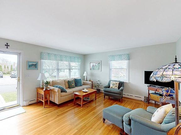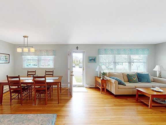 Set on the end of a private Easton's Point street, abutting the beautiful fields and campus of St. George's School, this meticulous single level home provides a peaceful and tranquil setting. Enter through the south-facing home's front door to an open floor plan of recently renovated kitchen, with breakfast bar, open to dining and living room filled with natural sunlight. Two spacious bedrooms are located off the living space with a well appointed new full bath. Freshly painted interior and beautiful hardwoods throughout the home. First floor laundry, one car garage, and huge dry basement with additional laundry hookups are a few additional features to the property.Private deck, stone terrace, and back yard offer plenty of outdoor space for entertaining. Enjoy beautiful walks to both Second and First beach for the outdoor enthusiast. A short drive to historic Newport Harbor's restaurants, shops, and galleries.