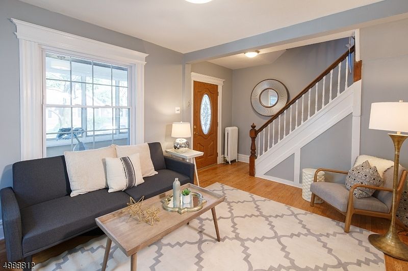 This adorable, move-in ready home in the Watsessing neighborhood is a MUST SEE! Great location near the park, elementary school, and a few blocks to the NYC direct train. 3 stops to NY Penn Station. You'll love this sweet starter home with it's enclosed front porch, gleaming, freshly refinished hardwood floors, and new paint throughout. The first floor includes the living room which is wired for surround sound, a dining room with charming built-ins, and a roomy eat-in kitchen with a pantry. Upstairs, you'll find 3 well-sized bedrooms and the updated main bathroom. The oversized garage is great for storage and there are expansion possibilities should you want to finish the basement.