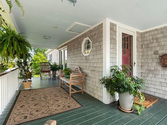 "Sky Rock" was aptly named in its day, as one could see out to the harbor and beyond ! Nestled now in trees, the ocean breezes are still there to be enjoyed ! With both an entry foyer and side foyer as well there is easy access to the covered porch -truly a gathering center for family & friends. The main floor has a living room with fireplace/wood stove insert, formal dining room, center playroom/den, an eat-in kitchen with wood stove & sliders to the oversized sun-filled back deck, a laundry& a half bath. The second floor has a primary bedroom (formerly two bedrooms) plus two additional bedrooms and a shared bath.The wrap around porch and back deck offer over 500 square feet of exterior living space with steps out to the amazing yard. There are several unique specimen trees -a Rose Margaretta, a Black Walnut, a River Birch, an Umbrella Pine,& several Rose of Sharon bushes interspersed among the open yard areas & the perennial gardens.Bonus:12'x12' shed for garden equip., bikes etc.
