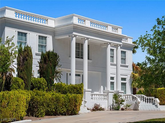 The Iconic Green Valley Ranch "White House", this 8,200 foot replica sits on a corner 0.49 acre lot in the timeless Guard Gated Quail Ridge Estates in beautiful Henderson. The Prominent Finish and Tall Pillars Exemplify It's Architectural Presence. The Spacious Living Areas Offer Elegant Marble Floors, Custom Drapery and Ceramic Columns, this estate was built for entertaining. Grand Primary Suite Offers One of Three Balconies overlooking the lush, private grounds featuring, decks, pool and spa. This regal palace is ready for a new owner to customize for themselves or update accordingly, the 4 bedrooms, 6.5 bath homes is located in prime Henderson, the City was Voted #2 safest large City in the USA. Near top schools, shopping, freeways, parks and just minutes from the World Famous Las Vegas STRIP, making fine dinning, entertainment, and shopping opportunities endless. This legendary home is finally on the market, ready for a new owner to update and priced aggressively for a quick sale!!