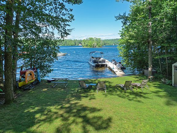 This stunning lakefront retreat offers breathtaking, panoramic views of the water, unforgettable sunsets, and the peaceful calls of loons echoing across the lake.