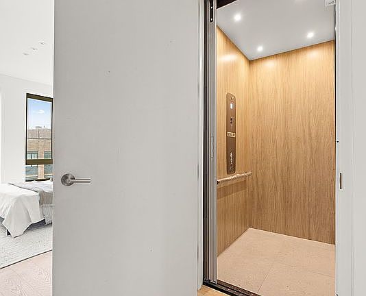 The elevator opens into an elegant foyer with a coat closet, bathroom, and wall-mounted iPad controlling your integrated sound and intercom system. To the right, the primary suite offers calm and comfort with huge double closets, a luxurious en-suite bath, and a private balcony with sunset views. The second bedroom is quite large as well, with space for at least a Queen bed and other furniture.