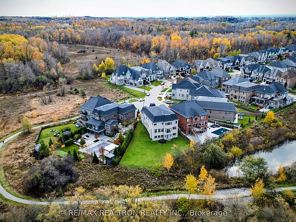 Welcome to 56 Ria Court - The Ultimate Ravine Retreat in the Prestigious Castles of King!Tucked away on a quiet, exclusive court, this spectacular estate sits on one of the largest ravine lots in the community - over 12,400 sq. ft. of resort-style privacy with a massive backyard that widens to 120 ft across the rear. A true showpiece offering 6,900+ sq. ft. of refined living space (including a full walk-out lower level), this residence combines timeless elegance with modern luxury.Step inside to soaring 10', 11' & 14' ceilings, a grand open layout, and exquisite craftsmanship throughout. The main level features a designer chef's kitchen with walk-in pantry, servery, and ravine views; an oversized dining area perfect for entertaining; and a stunning family room with gas fireplace and custom detailing. The elegant living room with 14' ceilings creates an unforgettable first impression.Upstairs, you'll find four private ensuite bedrooms, each thoughtfully designed, plus a serene primary suite with dual walk-in closets, his & hers spa-inspired baths, tray ceiling, and fireplace.The walk-out lower level feels like its own private retreat, complete with a full kitchen, guest bedroom, 3-piece bath, and direct access to the future pool-sized backyard oasis.Additional highlights include a main floor office with coffered ceiling, custom mudroom, second-floor laundry, and a 3-car tandem garage. No sidewalk, premium curb appeal, and an unbeatable location just minutes to top schools, boutique shopping, highways, and all modern amenities.A rare opportunity to own one of King City's most coveted court-lot estates - where everyday living feels like a private resort.