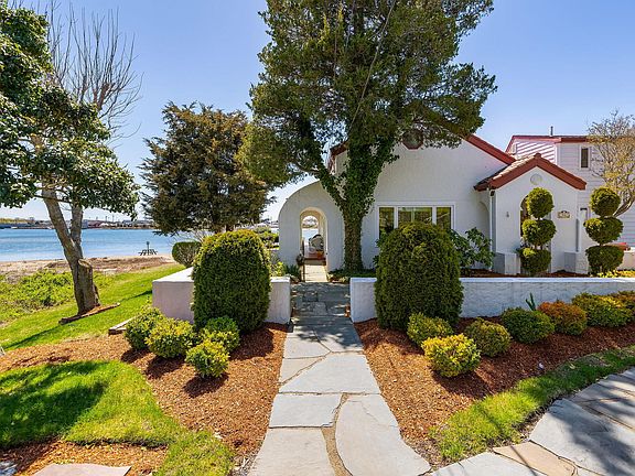 Waterfront getaway on Cohasset Narrows and Buttermilk Bay. This Mediterranean inspired villa is positioned on a private point to take in views from every room. Even the garage! Each view is unique. The waters in front are full of clams and quahogs. Outdoor cooking area for preparing fresh caught seafood, and a private outdoor shower. With 485 feet of water frontage, and a lush green yard this property is perfect for both entertaining and relaxing. Walking through the front garden with mature plantings, patios, and arches is like entering another world. Fully refreshed in 2012 this home is move in ready. The front door opens up to views of the water greeting you. The kitchen countertops and backsplash tastefully bring the outside in with hints of the red tile roof. The primary bedroom has 18 foot vaulted ceilings and access to the side patio. Overlooking the point the heated solarium has180 degree views of the water. With three bedrooms on the first floor the original house is perfect for first floor living. The addition has a formal living room with sunset views and a gas fireplace. Upstairs are two large bedrooms are private & comfortable with the beds looking out at the water.