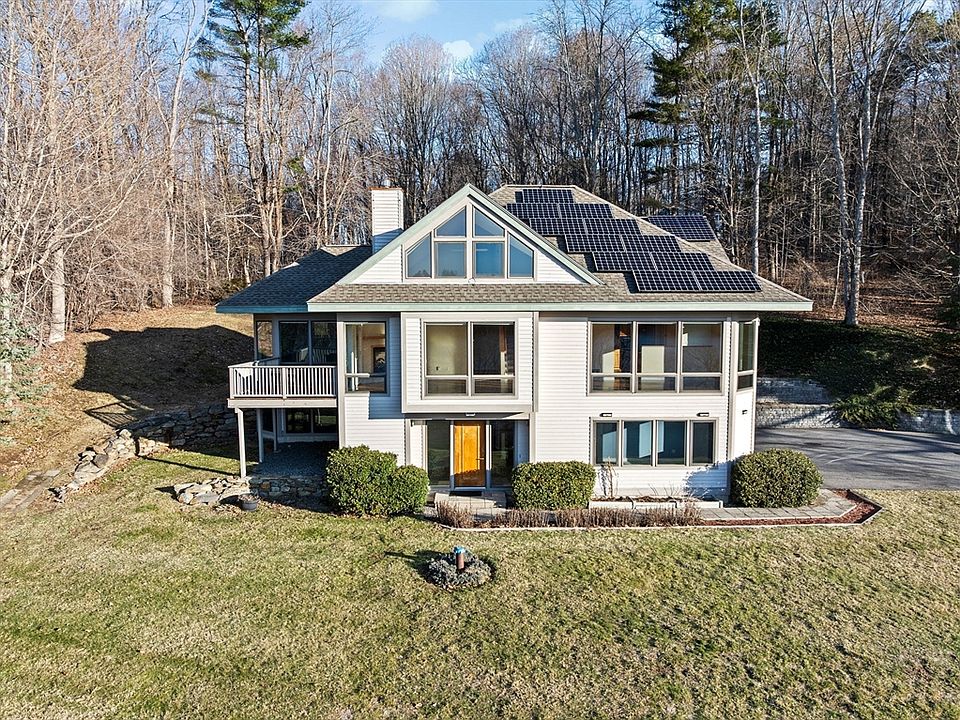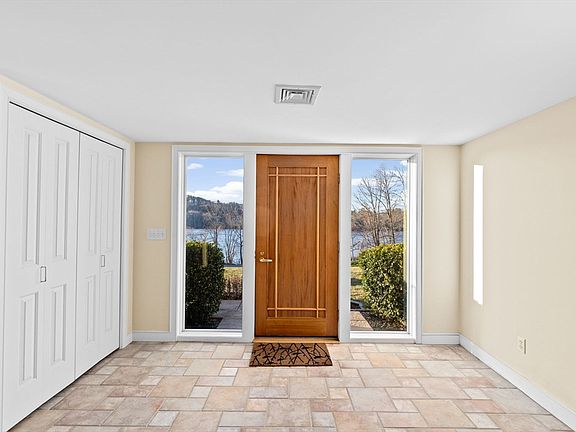 Perched high upon a hill in quaint Merrimac, MA, this 4-bed, 3.5-bath contemporary offers 4,000+ sq. ft. of sun-filled living space with unparalleled, unobstructed water views. Set on 2+ private acres, oversized windows flood every level with natural light, highlighting the open-concept layout — perfect for entertaining & everyday comfort. The large front entry makes a statement from the moment you enter the home & you will continue to fall in love as you proceed to the main-level to find the the kitchen, living/dining area & primary suite - featuring a spacious walk-in closet & sizeable full bath with a double vanity. Enjoy warm evenings on the front deck overlooking the river or relax on the back deck surrounded by nature. An expansive two-car attached garage offers opportunity for additional storage & ample parking in the extended driveway allows you to host with ease. Meticulously maintained by its original owner, this one-of-a-kind riverside retreat is ready for its next chapter!