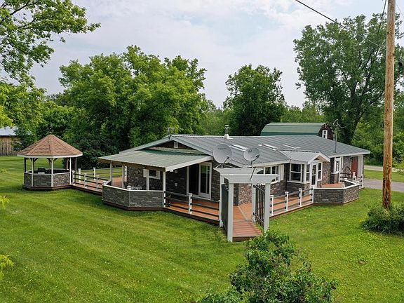Welcome to your Adirondack ranch situated on 55+ acres perfect for farming& hunting. Enjoy your own trails for ATV & snowmobiling. This home features an open floor plan, granite countertops, black stainless steel appliances, hardwood floors throughout, central air, wood stove & the perfect master bedroom featuring its very own sunroom. Your brand new wrap around trex deck is perfect for entertaining or simply watching the breathtaking sunsets. One detached garage/workshop has second floor storage which could be converted into finished space with income potential. Second garage is heated, has 3 bays perfect for all of your farm equipment, classic cars, recreational toys or your business needs. Property also features a 2 bed/1bath mobile home perfect for family or income potential. Just a short drive to Lake Champlain, Plattsburgh &30 miles to Lake Placid. Don't Miss this opportunity, this one won't last !