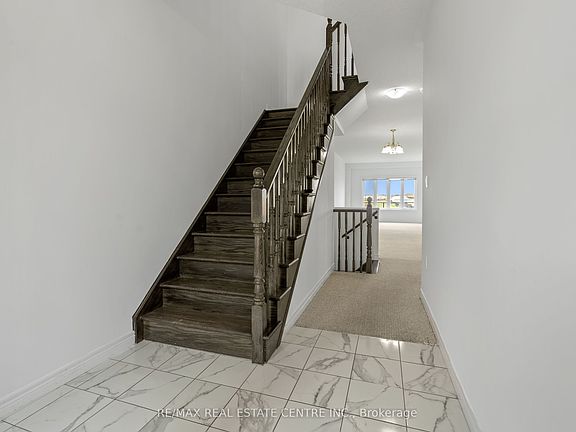 Welcome to 56 Rockledge Drive a spacious and sunlit 4-bedroom detached home backing onto a serene pond and walking trail in a family-friendly Hamilton neighbourhood. This 2,365 sq. ft. residence offers functional elegance and an ideal layout for modern living.Step inside to find 9-foot ceilings and an open-concept living, dining, and kitchen area, perfect for everyday comfort and entertaining. The kitchen features tile flooring, stainless steel appliances, ample cabinetry, and a dedicated dining space with a walk-out to the backyard.Upstairs, you will find four generously sized bedrooms, including two with private ensuites, and an additional 4-piece bath to accommodate family and guests. A powder room on the main floor adds convenience, and plush broadloom carpeting adds warmth throughout most of the home.The unfinished basement offers great potential for future living space or storage. Enjoy peaceful views of the pond right from your own backyard no rear neighbours, just nature and tranquility.Located just minutes from schools, parks, shopping, restaurants, and easy access to the QEW and Lincoln Alexander Parkway, this home delivers on both location and lifestyle.