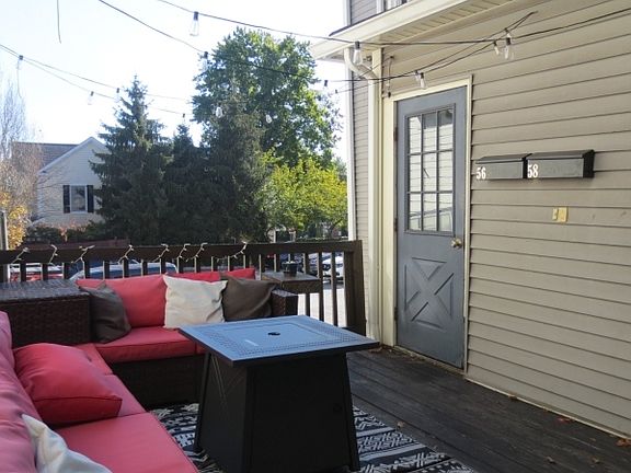Unique opportunity to live in charming apartment in the quaint village of Basking Ridge. Newer kitchen and baths, cherry hardwood floors in LR/DR, large master bedroom with private bath, covered porch (25 x 12) and plenty of storage. Tenant pays first $100 of repairs. Other room 1 is large porch off dining room. Fireplace can not be used.