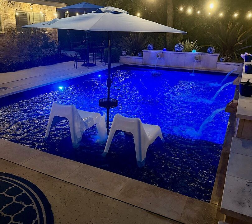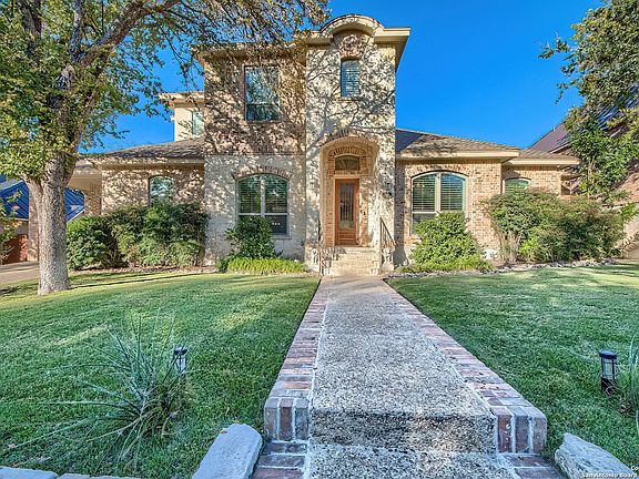 This exceptional custom home pairs timeless craftsmanship with thoughtful updates throughout, offering 3 bedrooms plus a dedicated study, elegant living spaces, and a backyard retreat complete with a pool and outdoor kitchen. Set behind the gates of The Heights II of Inwood, this property impresses from the first glance with its brick-and-stone elevation, porte-cochere, and manicured landscaping. Step inside to rich mesquite hardwood floors, soaring 11' ceilings, plantation shutters, and architectural details that create a warm, refined feel. A gracious formal dining room sits just off the entry, framed by columns and a tray ceiling, making it an inviting space for gatherings. The spacious living area features a stunning floor-to-ceiling stone fireplace, custom built-ins, and seamless flow into the expansive kitchen. With abundant cabinetry, granite counters, under-cabinet lighting, and a Viking gas cooktop, the kitchen is designed to support both serious cooking and everyday convenience. The primary suite is a peaceful retreat, highlighted by abundant natural light and wood floors. The spa-inspired bath features a long double vanity, a large walk-in shower with dual shower heads and direct access to an oversized walk-in closet. Two additional bedrooms, an upstairs flex/game room, and a dedicated study (downstairs) with built-in desk and cabinetry offer flexible living for today's lifestyles. The large utility room-with sink, storage, and beadboard detail-adds everyday functionality. The pool transforms the backyard into your personal escape. Surrounded by patio space and complemented by a covered outdoor kitchen boasting a built-in grill, sink, and prep area, this yard is ready for hosting-whether it's summer BBQs, quiet mornings by the water, or celebrations. The detached garage includes a full workshop bay with a back garage door for added convenience and airflow. The built in safe adds protection and comfort to keep your valuables protected. A rare blend of quality, comfort, and curated upgrades, this immaculate home offers a move-in-ready lifestyle in one of Inwood's most desirable gated sections.