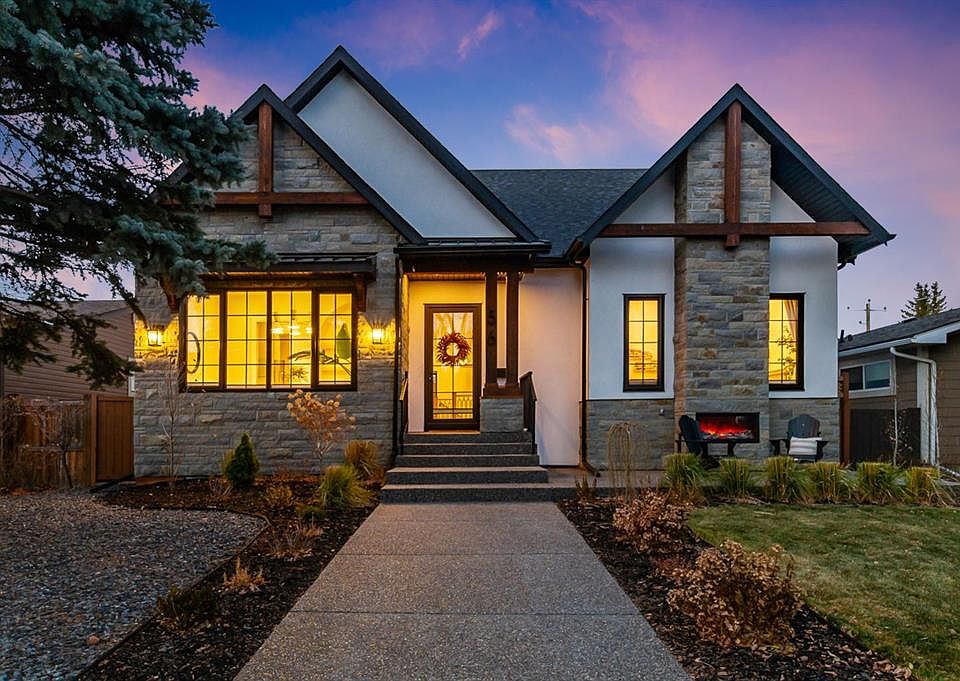 **Open House Sunday 2-4** Welcome to this exquisitely crafted CUSTOM BUNGALOW with TRIPLE GARAGE on large 50'x122' lot in the heart of North Glenmore Park! Featuring 4 bedrooms + office/gym, 3 bathrooms, and over 3,700 sq. ft. of developed living space, this stunning home blends timeless design with modern luxury. Natural stone and cedar accents create striking curb appeal, leading inside to bright, airy interiors with custom millwork, graceful arches, and premium finishes throughout. MAIN LEVEL showcases a superb chef’s kitchen with white oak ceiling-height and glass-display cabinetry, built-in spice racks, a 12-ft island with undercounter storage, quartz surfaces, a butler’s pantry with solid wood pocket doors, large prep counter, and high-end appliances. The living room boasts soaring 15-ft vaulted ceilings, a venetian-textured fireplace, and double doors opening to a private south-facing yard and oversized deck. Dining room is beautifully designed with custom arched coffee-bar and large window. The primary suite features vaulted ceilings, a spa-inspired ensuite with steam shower, and a walk-in closet with custom cabinetry. S second spacious bedroom, laundry room, and full bathroom complete the main floor. LOWER LEVEL features two additional bedrooms, a gym, and a large recreation room with wet bar and in-floor heating. OUTSIDE, enjoy a beautifully landscaped yard with oversized deck, triple garage (third bay fits RV/boat), and dog run. Plus, THE LOCATION is simply unbeatable—just minutes to River Park, Sandy Beach, Marda Loop, and downtown YYC. If you’re seeking luxurious living in a beautiful, established neighbourhood, this is it!