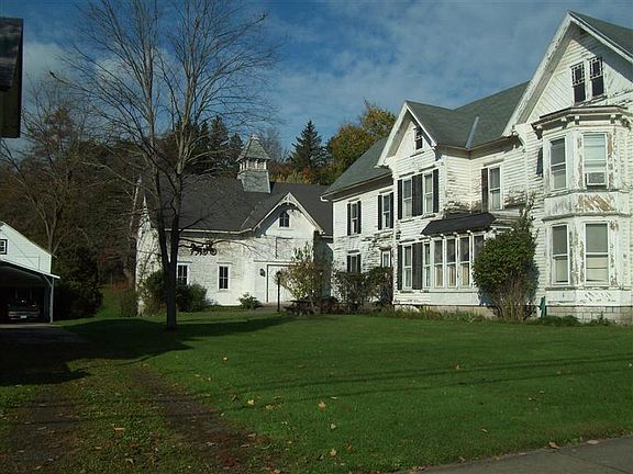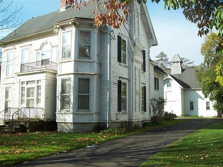 Very spacious beautiful victorian home in the village on 3+ acres of land. Has many features such as pocket doors, walk in pantry 16 x 5, 4 fireplaces (no information if functioning), beautiful wood double closet in bedroom with mirrors, and mostly hardwood floors. In the library there is built in bookshelves as well as fireplace. Has a very nice 3 story carriage barn including 6 garage spaces and many more features. Really worth taking a walk through. Home needs updateing.