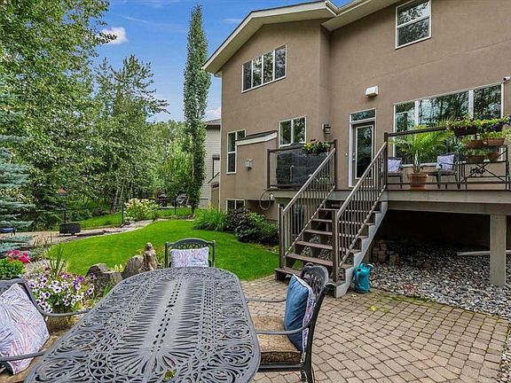 A rare opportunity to own an executive family home on one of the most sought-after streets in Rock Lake Estates. This 2 storey home features almost 3,800 square feet of lovingly maintained living space and is perfectly situated on one of the largest lots in the community. Distinctive rooflines and stone accents compliment the charming curb appeal of this home that has a terrific blend of privacy, elegance, and modern comfort, with a peaceful feel of a country escape. The inviting foyer and reverse walk-out design creates a light-filled lower level where oversized windows and high ceilings frame the spacious recreation room. A large guest bedroom and stylish full bath make this floor ideal for extended family or visitors, while a generous mudroom with built-in bench connects to the oversized double garage with extended depth for extra storage or workspace. Dual high-efficiency furnaces and on-demand hot water keep the home comfortable year-round. Upstairs, the main level unfolds into an open concept living space designed for both connection and entertaining. The chef-inspired kitchen features an oversized granite island, premium stainless-steel appliances, induction range, and a walk-in pantry, perfect for everything from weekday dinners to festive gatherings. The sunny breakfast nook overlooks the backyard’s lush greenery, while the inviting great room, anchored by a gas fireplace, creates a cozy space for relaxing evenings. A vaulted-ceiling bonus room with south-facing windows offers a sunlit retreat, and the elegant formal dining room sets the scene for memorable celebrations. A private den with rich built-ins and patio access provides a quiet space to work from home. The air-conditioned upper level is home to four generously sized bedrooms, including one with mountain views. The primary suite is a true sanctuary, offering serene aspen forest vistas, a spa-inspired ensuite with soaker tub, walk-in shower, dual vanities, and a custom walk-in closet with built-in cabinetry. A full laundry room and a thoughtfully designed main bath complete this level. Step outside to a backyard oasis that feels worlds away from city life. Professionally landscaped and framed by mature aspen trees, it features a composite deck for summer dining, a brick patio for evening fires, a tranquil waterfall, and a four-zone underground sprinkler system to keep everything lush. Two gas BBQ outlets make hosting effortless. Park in the oversized garage that has a dedicated circuit for EV charging. From your doorstep, explore winding pathways, serene ponds, and wetlands. The Rocky Ridge Recreation Centre and YMCA offer tennis and basketball courts, paddle boating, a splash pool, and fitness facilities. Schools, shopping, the LRT, and major roadways are only minutes away. In Rock Lake Estates, this rare offering pairs luxury living with a lifestyle surrounded by nature, a home that you will be proud to share with family and friends.