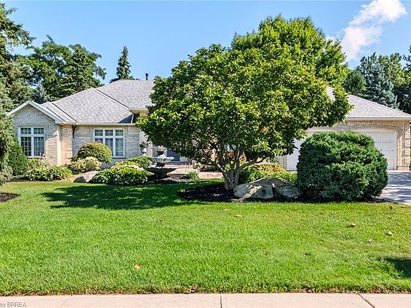 Prestigious Ava Heights Location close to Brantford Golf & Country Club on .7 of an acre lot in the city with 96 feet frontage is this all brick ranch with great curb appeal featuring 2,593 sq ft on the main level with 2 car garage, nicely landscaped grounds with lots of room to add an inground pool, front foyer & dining room with higher ceilings, open concept eat-in kitchen to main floor family room with gas fireplace and built-in shelving on both sides, main floor laundry & mud room off of garage, spacious living room with beautiful view of the private large backyard, master bedroom with walk-in closet & ensuite bath with separate shower & tub, 3 bedrooms, 2.5 baths on main level, convenient walkdown stairs from garage to basement, full unspoiled basement ready to finish into rec room, games room, theatre room, more bedrooms & bathroom, rough in bath in basement, central air, central vac, underground sprinklers with a separate 24' dug well so your grass is always green at no cost, newer re-shingled roof & furnace, brick storage shed or future pool cabana, large patio for your summer family BBQ's, fantastic opportunity to live in a sought after area, Location Location Location!!