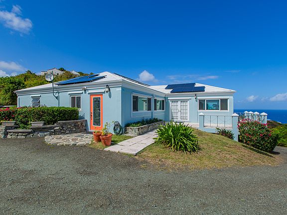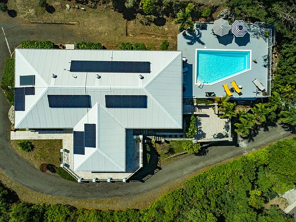 Welcome to ''Island Camelot'' a stunning 3-bedroom, 2-bath, hilltop home, offers unparalleled panoramic views of the sea, Buck Island and east to Christiansted. Perfect for families, the open kitchen's amenities include granite countertops, GE Profile appliances, and an open layout including eat-in bar. Each bedroom suite is complete with ceiling fans and split A/C's. The main bedroom offers direct access to the pool and all bedroom suites have extra storage space. This gated Northshore home also features pool, large concrete sundeck, a patio adjacent to the pool for grilling & outdoor dining, 2 workshops, 1-car garage, 30 solar panels with 2 Tesla batteries, solar hot water, impact glass windows on the north side, as well as a wrap-around gallery just steps away from the pool & living room. The large great room is perfect for entertaining along with a formal dining area with those amazing views! The exterior has just been freshly painted -ready for you to move in and make it your own island retreat!