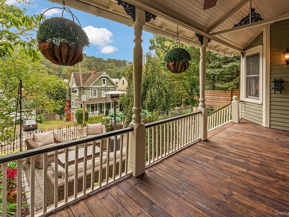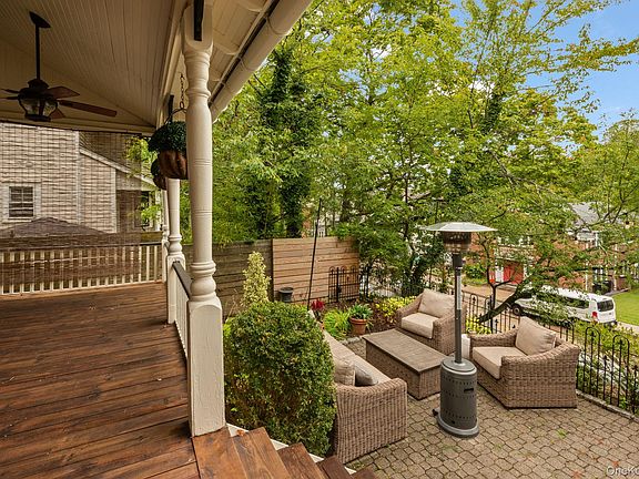 This rare antique Victorian in Northport Village blends historic charm with modern convenience. Built-in 1896, this architectural gem features 10-ft ceilings, original molding, hardwood floors, tin ceilings, and stunning craftsmanship. The main level boasts a living room, sitting room, sunroom, full bath with clawfoot tub, and an open kitchen-dining area with stainless steel appliances and granite countertops. Upstairs, three spacious bedrooms, a full bath, and a primary suite with a coffered ceiling, Venetian plaster walls, and ample storage. The outdoor space includes a covered mahogany porch, fenced courtyard, koi pond, and a bluestone patio. Private parking for three cars is accessible via a deeded road. With brand-new windows, natural gas, CAC & public sewers, this is a rare find just one block from Main Street's restaurants, shops, and parks!