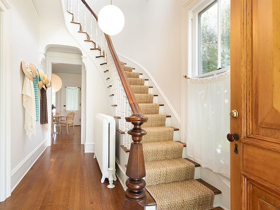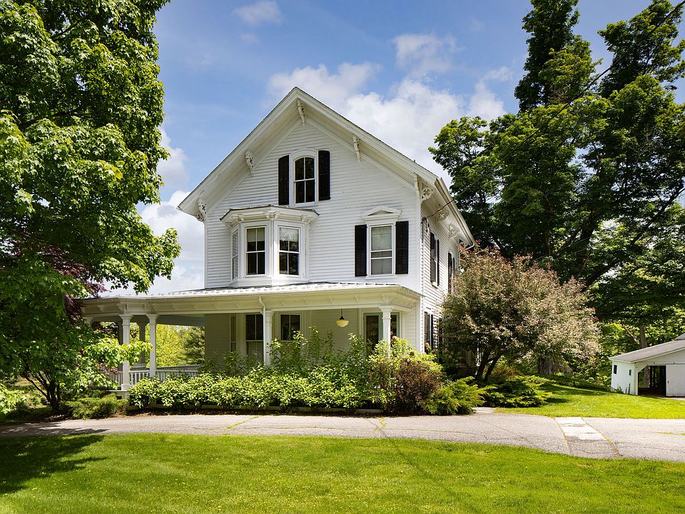 This distinguished 1880s Victorian residence in the heart of Lakeville village offers a masterful blend of period craftsmanship and contemporary luxury on 2.5 private acres. Located moments from both the town green and Lakeville Lake, this meticulously restored 5-bedroom estate presents refined living in one of Litchfield County's most sought-after locations. The welcoming wrap-around covered porch leads to an elegant entry hall featuring a striking curved staircase. Grand proportions define the formal rooms, where original wood-burning fireplaces, soaring ceilings, and oversized windows create an atmosphere of timeless sophistication. The gourmet kitchen showcases top-tier stainless appliances, substantial island, and bespoke wood cabinetry, with a bright dining area flowing to the generous rear deck overlooking the grounds. The second floor houses a bright primary suite with ensuite bath, three additional bedrooms, a dedicated home office, and a luxurious bathroom featuring custom marble, Waterworks fixtures, and radiant heat flooring. A stylish laundry room and thoughtful storage complete this level. The third floor provides a secluded guest retreat with original wood floors, flexible studio space, and cedar-lined storage. The property's exceptional amenities include a versatile two-story barn with basement-ideal for studio, workshop, or recreational pursuits-plus a detached one-car garage. The Serene grounds frame this village estate, offering the rare combination of in-town convenience with country property privacy just steps from Lakeville's shops, restaurants, and recreation.