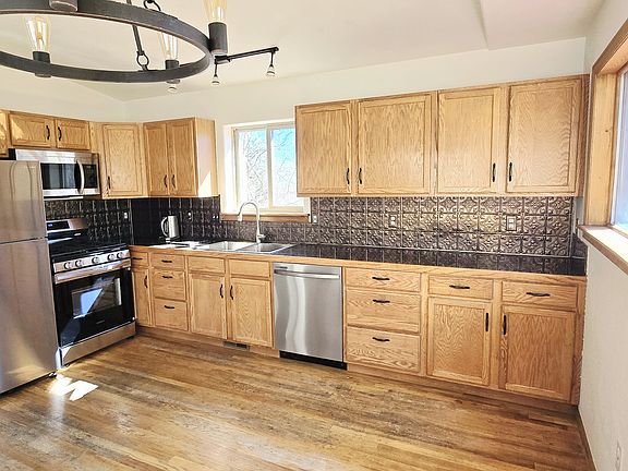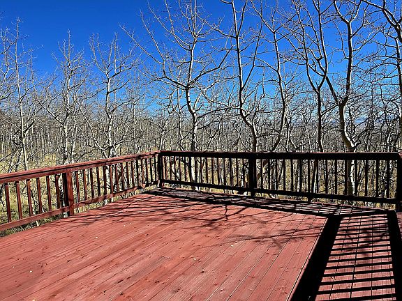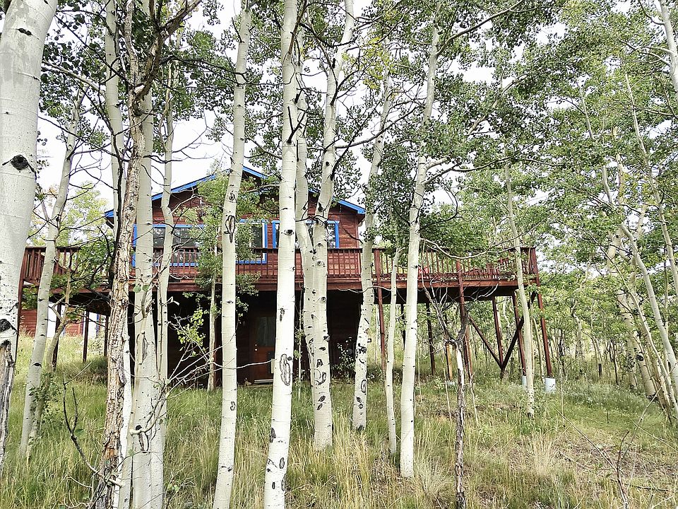 3-bedroom, 2-bath home on a private 1-acre lot with mature aspen trees. The property features a wrapping deck, freshly painted interior and exterior, and brand-new carpet throughout. Detached two-car garage for parking and storage.