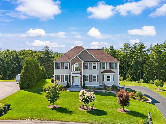 Welcome home! This stunning MOVE-IN READY 4-bedroom, 3-bathroom gem is in immaculate condition, offering a perfect blend of luxury and comfort. As you step inside, you’re greeted by high ceilings and gleaming hardwood floors that flow effortlessly throughout both levels, setting the tone for the rest of the home. The first floor features a grand entryway, a private study with gas fireplace, and a spacious eat-in kitchen that’s a chef's delight. With granite countertops, a walk-in pantry, a large kitchen island, ample cabinet space, and a gas stove, this kitchen is both functional and stylish. The open layout includes a huge living room with gas fireplace, a sunroom, and a formal dining room. Off the kitchen, a sliding glass door opens to a composite deck—perfect for entertaining and enjoying the beautifully landscaped backyard. On the second floor, the primary bedroom suite offers a walk-in closet with built-ins and a full bathroom with a soaking tub. Three additional bedrooms, a full bathroom, and a laundry room complete this level. The finished basement provides extra living space, ideal for home offices or recreation. Nestled in a quiet cul-de-sac with easy access to I-93, this home offers both convenience and tranquility. A 3-car garage with epoxy flooring ensures ample space for vehicles and storage. Additional features include a whole-house generator, irrigation system, radon mitigation, and a custom shed with solar electricity. Don’t miss the Open House on 9/15/24!