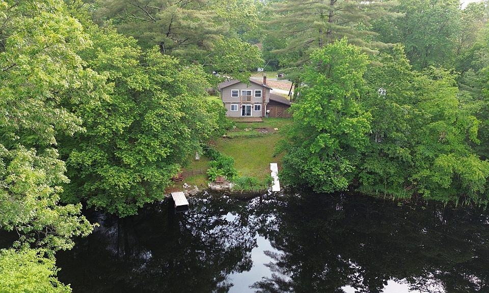 This waterfront home has a beautiful view of Taft Pond, perfect year round vacation setting for swimming, boating, ice fishing, ice skating and more. Inside this unique post and beam home you'll walk through the living room to an outdoor patio with amazing views of the pond, venture upstairs to a master bedroom with multiple closets, attic access, and a Juliet balcony with breathtaking views of Taft Pond, plus two additional bedrooms and a full bathroom. Outside you'll find a fenced in side yard, patio, gardening area, and private dock. Conveying with the property are the washer/dryer, garage fridge, and car port.