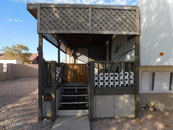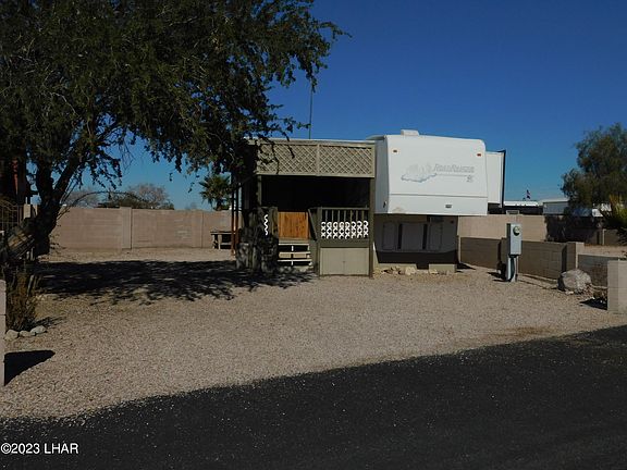 Desire to have your property within a gated community? Don't miss out on this improved parcel. It has a covered wooden deck with a built-on storage room. The deck is the perfect fit for entrance to the fifth wheel placed next to it. There are two full RV hook-ups; one is currently serving the fifth wheel on the site. A storage shed with electricity is plumbed for a washer.