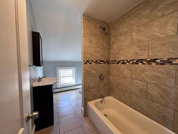 Available Now! Modern and cozy 2 bedroom apartment on quiet street in Pawtucket. Original hardwood floors throughout have been refinished and shine! Modern kitchen and bathroom with cherry cabinetry, custom tile, and stainless steel. Laundry in basement. Easy highway access and east drive to train station. Small pets negotiable. Parking for 1 car. Contact me to schedule a viewing today! Tenant responsible for gas and electric. Owner pays trash/water/sewer.