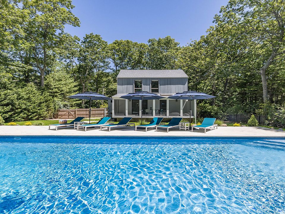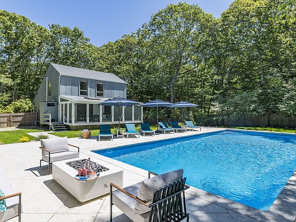 Experience this beautifully refreshed and well-maintained three bedroom, two bathroom home in the sought after Clearwater Beach Association. Upon entering, you'll be greeted by a light-filled open floor plan featuring a spacious living and dining area with high ceilings and wood-burning fireplace. The renovated kitchen with stainless steel appliances is fully equipped for all of your culinary needs. A screened-in porch just off the kitchen offers the perfect setting for outdoor dining. The home's main level provides a convenient bedroom and full bathroom, while the second level showcases two additional bedrooms and a full bathroom. Outside you'll find a resort-like setting with lush landscaping surrounding the sun-drenched patio and heated pool, providing plenty of space for relaxing poolside and soaking up the sun. The cozy outdoor fireplace area is the perfect spot to enjoy the summer evenings. If you do choose to leave this splendid oasis, you are just moments to the private lifeguarded bay beach, community marina, picnic/grilling area, and playground. In the evenings you can experience breathtaking sunsets and vistas over Gardiner's Bay. Enjoy convenient access to the wonderful nearby restaurants along Three Mile Harbor, stop by the Springs farmers market during the summers, or take the quick drive to both East Hampton and Amagansett villages. Don't miss the opportunity to see this wonderful home while it lasts!