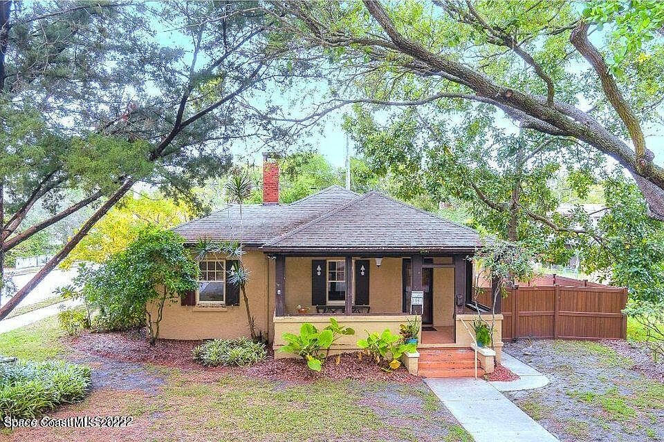 Cute craftsman style cottage with front porch overlooking the charming tree lined street. This corner lot location is in Historic Rockledge is so close to the fun and entertainment of Cocoa Village! Take a short walk down to the Indian river and enjoy the community dock overlooking expansive water views. This historic home is sure to please boasting wood floors, stone wood burning fireplace and 2016 AC unit. Conveniently located to beaches, and space center!