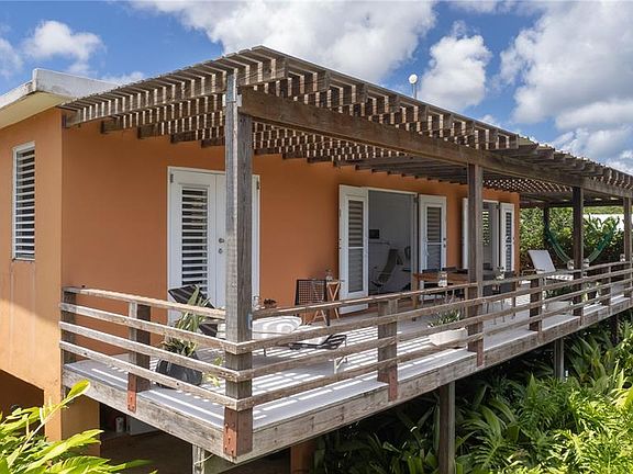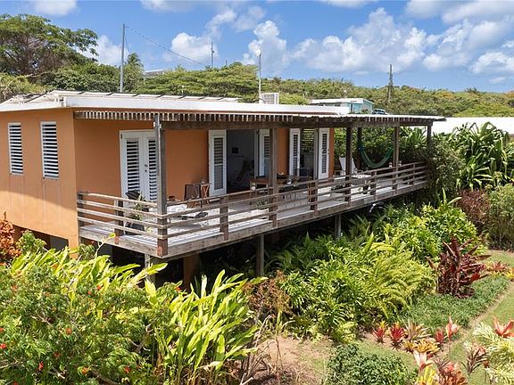 A nature lover’s dream! Casa Eden isn’t your typical home on the beautiful island of Vieques — it’s a curated experience where functionality and comfort meet one of the finest designed gardens on the island. This extraordinary setting is the result of over 15 years of dedication by acclaimed landscape artist Jeff Mendoza, who has poured his creativity and soul into every inch of the land. Perched at the very top of the property, the house enjoys panoramic ocean views, gracefully framed by terraced gardens and lush foliage. A dynamic blend of native and exotic plant varieties flow through the landscape, creating a living masterpiece that evolves with every step and season. Tucked away in a peaceful location, the property offers a true sense of privacy and calm — ideal for those seeking a quiet, nature-filled retreat. Surrounded by vibrant greenery and thoughtfully designed outdoor spaces, it feels like your own secluded oasis. The home itself embodies elegant simplicity with an open, airy layout filled with natural light. A wide, covered terrace wraps around the living space, bringing filtered sunlight and cooling breezes throughout. The central living area seamlessly connects the kitchen and lounge area to the outdoors through double French doors, opening onto the spacious terrace — a perfect setting for dining, relaxing, or simply soaking in the breathtaking northern ocean views. The primary bedroom overlooks the horizon and includes an en-suite bathroom. On the opposite side of the house, a guest bedroom and bathroom provide privacy and comfort for visitors. The lower level features a large storage room and shaded parking area. This flexible space could be converted into a guest suite, rental unit, or additional living area to suit your needs. Adding to its appeal, the house is equipped with a solar energy system — offering sustainable, off-grid living with modern comfort. It's an ideal setup for those seeking a more independent and environmentally conscious lifestyle. Casa Eden is more than just a home — it's a lifestyle. Designed and nurtured by renowned landscape artist Jeff Mendoza, this property harmonizes thoughtful architecture, lush design, and natural serenity. With stunning views, solar-powered sustainability, total privacy, and a peaceful ambiance, it offers a rare opportunity to live in beauty and tranquility on the island of Vieques.