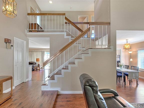 Welcome to this fantastic Phillips Ranch home in the desirable Marlborough Homes community with no road noise from the nearby and convenient 60 and 57 freeways. This is a wonderful floorplan with 3 bedrooms (all upstairs) and 2.5 bathrooms with 2083 sf. The generous sized lot boasts an aluminum carefree patio cover on a concrete slab. The interior was remodeled with engineered hardwood flooring, dual pane windows for energy efficiency, and an updated kitchen. The custom front door opens to a high ceiling that extends through the living room. Wood shutters are through most of the home. Fireplaces warm the living and family rooms. The kitchen features recessed lights, newer appliances: gas cook top and a double oven. The kitchen window over the sink looks into the backyard, so doing dishes will never get old! The adjacent nook also view the back yard and family room. Entertaining guests will be enjoyed with a wet bar and fireplace with built-in book shelves. A powder room services downstairs along with a convenient laundry room. The wood staircase leads to 3 bedrooms, all with views to the backyard. The primary bedroom has vaulted ceilings and a luxury bathroom with mirrored closet doors, dual sinks, and a separate tub and walk-in shower. A hallway bathroom accommodates the additional bedrooms. The steel roof and water heater have been upgraded. A water softener, refrigerator, washer, and dryer are also included. Schools are award winning and shared with N Diamond Bar. Excellent nearby shopping at the Wino grocery store, Target, and Walmart, along with a myriad of restaurants and shops. It's a short 10 minute drive to the Shoppes mall, Ranch 99, and Costco in Chino Hills, or The Chino Spectrum. Exercise at the nearby mile long greenbelt or miles of hiking trails with city light and mountain views. Phillips Ranch is a great place to live!