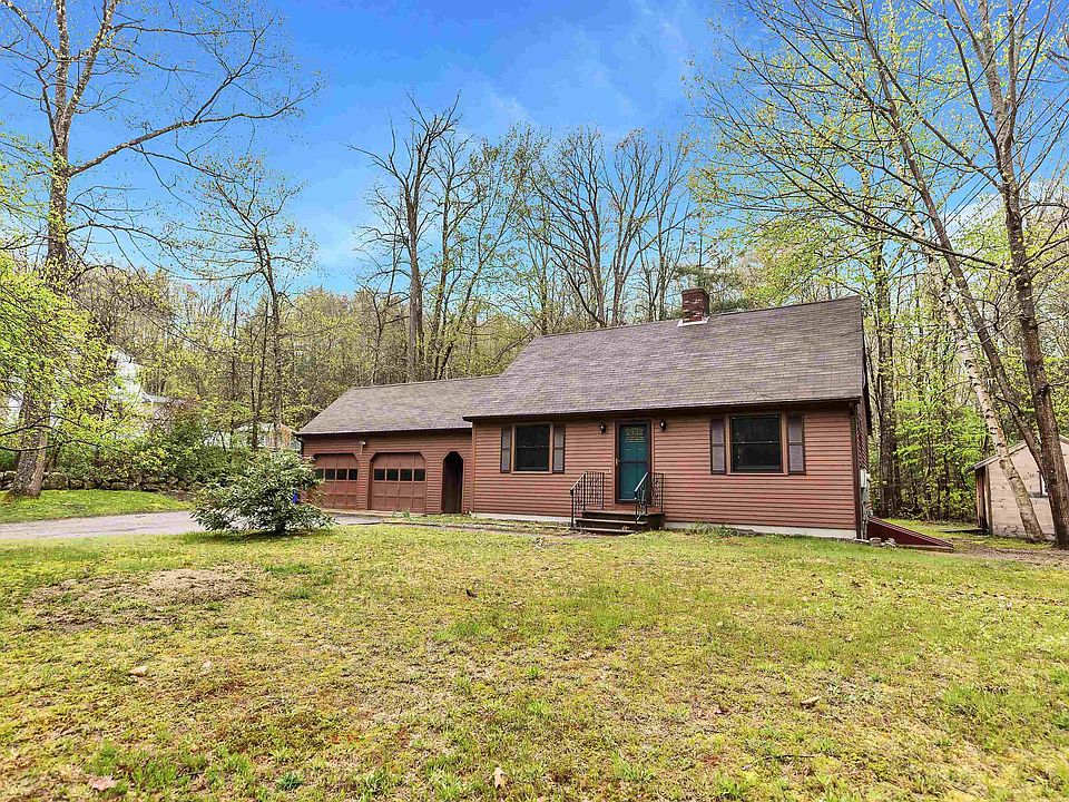 LOCATION, LOCATION, LOCATION is just PERFECT for this 3 bedroom, well maintained Cape with 2 baths and an attached oversized 2 car garage. There is a mud/laundry room at the garage entrance, a working kitchen with granite counters and tiled floor. The primary bedroom is on the 1st floor with a 3/4 bath and gleaming hardwood that flows through the rest of the 1st floor. There is a foyer with guest closet leading to a spacious living room with a brick fireplace. The open concept dining area overlooks the deck and back yard. The two 2nd floor bedrooms are very spacious with great closet space and easy access storage in the walk-in attic. There is an oil fired FHA system with two 275 gal. tanks in the basement and a hookup for a third tank in the oversized garage. There is a backup FHA pellet furnace for cozy, economical heating! Add a standby propane generator and you are ready for the blizzard of 2025!! Goffstown High School is just down the street and it is an easy stroll to Goffstown Village and all of its amenities and activities.
