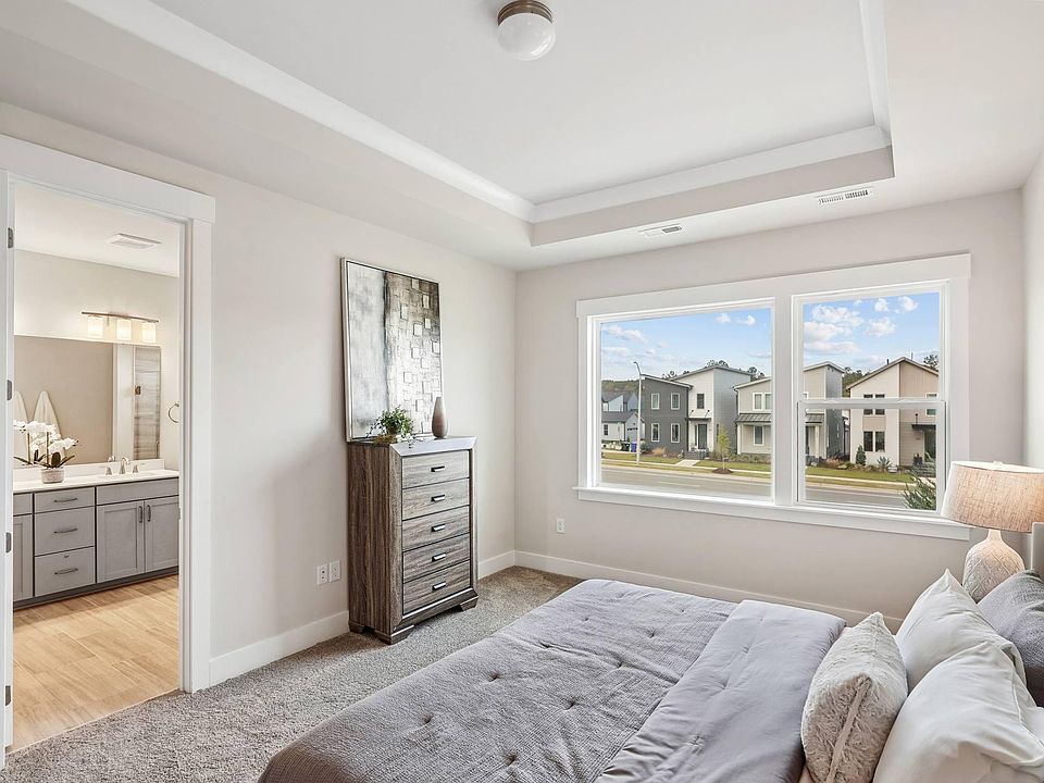 Bright and Airy Corner Homesite Sampson Plan at NoVi in Chatham Park At 56 Wandering Way, every detail of the Sampson Plan is designed to brighten your day. Perfectly positioned on a corner homesite in NoVi at the Park, this home enjoys extra windows, added privacy, and a location that feels open and inviting, ideal for both quiet mornings and lively gatherings. The kitchen is the true heart of the home, featuring upgraded cabinetry, quartz countertops, a textured designer backsplash, and a large island with pendant lighting. A GE Profile stainless steel appliance suite, including a 36'' gas cooktop, double wall ovens, under-cabinet hood, and dishwasher, brings both performance and style. The open-concept great room flows seamlessly outdoors to a private brick-walled courtyard, perfect for coffee at sunrise, casual dinners, or evenings under the stars. Upstairs, the primary suite is your retreat, with a spa-style shower featuring upgraded tile walls, a designer tile pan, quartz counters, and brushed nickel fixtures. Two additional bedrooms, a flexible loft, and thoughtful upgrades throughout, open-rail staircases, stained wood treads, custom shelving, ceiling fan pre-wires, and a smart entry system, make this home as functional as it is beautiful. Life at NoVi at the Park means more than just a home. With trails, greenways, gathering spaces, and the brand-new Chatham Park YMCA just moments away, plus easy access to Pittsboro's downtown, Chapel Hill, Durham, and Raleigh, this is where comfort and convenience connect. 56 Wandering Way offers the charm of a corner location and the warmth of the Sampson Plan. Schedule your appointment today and see it for yourself.