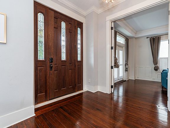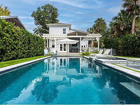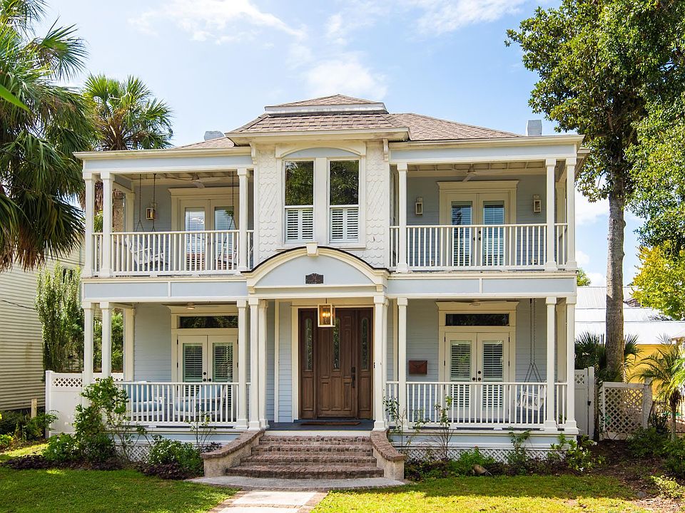 Historic elegance meets modern living on Water Street. It's not often a house like this comes available - a thoughtfully renovated 1872 residence in the heart of St Augustine’s coveted Abbott Tract. Located on this picturesque street, the two-story residence offers the perfect blend of classic charm and contemporary comfort, all just steps from the Castillo de San Marcos, downtown St Augustine, the bayfront, and the vibrant uptown district. Set on a deep lot, this home offers a gated driveway with dedicated parking. Brick steps lead you to the inviting covered front porch, where a solid antique wood door is framed by dual French doors opening to both the living room and family room. Step into the foyer and be greeted by original heart pine floors and staircase, lovingly preserved during the home’s top-to-bottom renovation in 2019. To your right, a formal sitting room opens to a sunlit dining area, both overlooking the open-concept chef’s kitchen, complete with modern finishes and thoughtful design. On the left, the family room flows easily into the main dining and kitchen spaces. A half bath, storage room, and mudroom entrance complete the first floor. Step outside to your private retreat: a fully fenced backyard designed for both entertaining and leisure. Completed in 2020, the space features low-maintenance artificial turf, a bocce ball court, stone seating areas and a deliciously inviting pool. Practice your short game on the custom putting green, or simply unwind under the Florida sky. Upstairs, two guest bedrooms share a full bath, while a spacious junior suite includes its own private bathroom with a walk-in shower. At the east end, the primary suite offers a tranquil sanctuary with two balconies, a private sitting area, peeks of the Matanzas River, and a generous bathroom featuring a modern clawfoot tub, walk-in shower, double vanity, and walk-in closet. This is more than a home - it’s a legacy, a lifestyle, and a chance to live in one of St Augustine's most treasured neighborhoods.