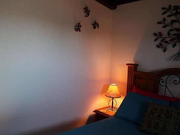 Very pretty lot with a 1 room casita and a 12 x 20' garage, both hooked up to electricity. The lot has rolling hills and an arroyo, with very nice tree coverage. The casita is very well build. It also has a small wood stove for chilly nights. It is currently used as a bedroom. In front of the casita is a sheltered patio area, shaded most of the time.In the garage is a small area set up as a kitchen with an air-fry counter oven, a microwave and a small refrigerator.There is also an outhouse, and a rainwater collection system off the garage.