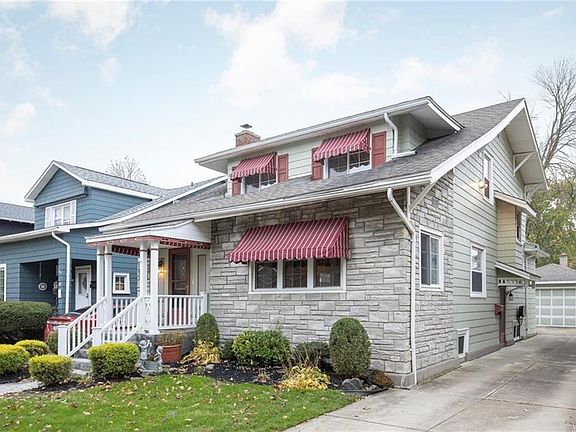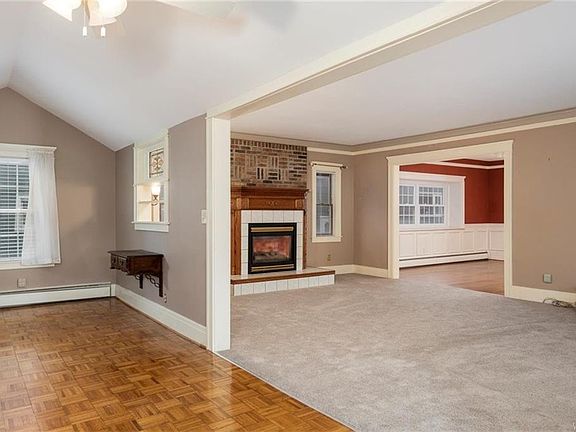 Don't be deceived...it's bigger than it looks. This bungalow-style 3 bedroom/2.5 bath home has plenty of room and plenty of updates. The first floor features a sunroom with vaulted ceiling, large living room with gas fireplace and new wall to wall carpet, a dining room with oak hardwood floors and built-in corner cabinets, an expanded kitchen with tile backsplash and stainless steel appliances (stove, refrigerator, microwave, dishwasher) and an attached breakfast room with wall-mounted flat screen TV. The second floor has a hall bath and 3 generously sized bedrooms with ceiling fans and deep closets. There's a finished room in the basement as well as full bath, new Lennox boiler (2018), central A/C and sump pump. The home also features replacement windows throughout, rear deck with retractable awning, and a 1.5 car garage with heated workshop behind.