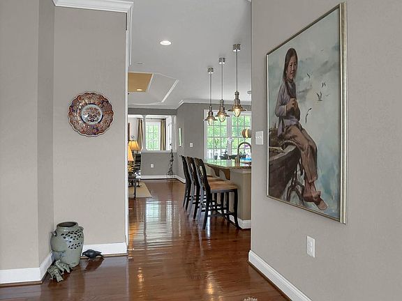 So many builder upgrades totaling over $154,000 and over $75,000 in additional finishes! Welcoming entry with 8 foot doors throughout, hardwood floors on main level except in master bedroom, bathrooms and laundry room. Tray ceilings in the great room, master bedroom and breakfast room. master bedroom has a 4' extension, tray ceiling, private bathroom and a walk in closet. There are 2 additional bedrooms with hardwood floors, Bedroom 2 has built-in shelving. Gourmet kitchen has upgraded stainless steel appliances including a gas stove with electric self-cleaning oven, Granite counter tops, and a pantry. Sun room/siting room has a beautiful stone fireplace with a wood-beam mantle and has a door leading to a spacious deck with a retractable awning. All plantation shutters convey with the home. Garage has pull down attic stairs, a side door and an additional water faucet. Lower level currently has a Studio/pool room, a media room with stacked stonewall, tongue-in-groove diagonal wall, wiring for surround sound. There is also a workshop/storage room, a room that could be used as a bedroom, sitting room or perhaps a workout room, use your imagination. Lower level also has a half bathroom, storage room with laundry tub and 1 other storage room. There is a walkout to a covered paver patio overlooking the back yard. Lots of landscaping. Don't miss this listing.