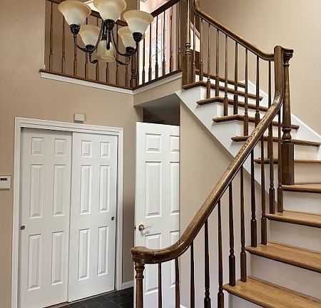 Dramatic ceilingsFinished lower levelAmple guest parkingRec roomPool table areaRenovated eat-in kitchenSoaring circle-top windows