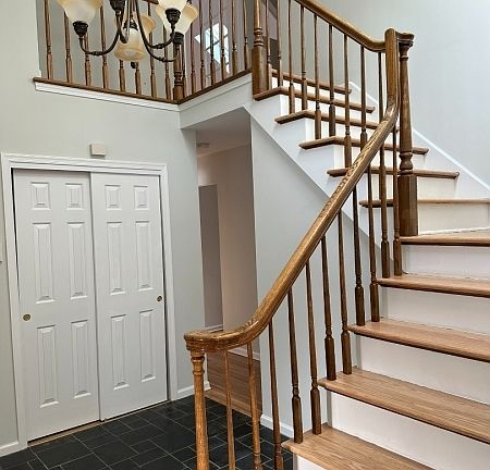 Freshly Painted and Floors Refinished. Custom 10-room home situated on a serene and private lot, this exceptional residence offers a refined living experience with 4 spacious bedrooms and 3 full baths. Dual primary suites are positioned on each level, ideal for luxurious guest accommodations. The home is nestled on a landscaped, level parcel accented by mature trees and carefully selected plantings, creating a tranquil and secluded atmosphere. Inside H/W floors, a charming gas stone fireplace. Soaring circle-top windows and skylights (2021), bathe the interior with natural light. The renovated kitchen opens seamlessly to a large beautiful 1000 sq ft TREX deck, perfect for quiet outdoor dining or lively entertaining. Upper-level bedrooms, freshly painted and crowned with dramatic ceilings, exude a bright, airy ambiance that contributes to the home's move-in-ready appeal. The finished lower level has been transformed into a leisure haven, complete with a rec room and bar. Add'l amenities incl an oversized 2-car garage, a brick paver walkway, and ample guest parking. A long list of improvements: the roof and solar panels (owned) were installed in 2020 with 25-yr warranty, water heater, and deck gazebo all in 2021. Seller conducted a full home inspection and addressed key items, including professional servicing and repairs to the well and septic systems. Buyers can move forward with confidence knowing these critical systems have been recently evaluated and updated.
