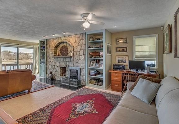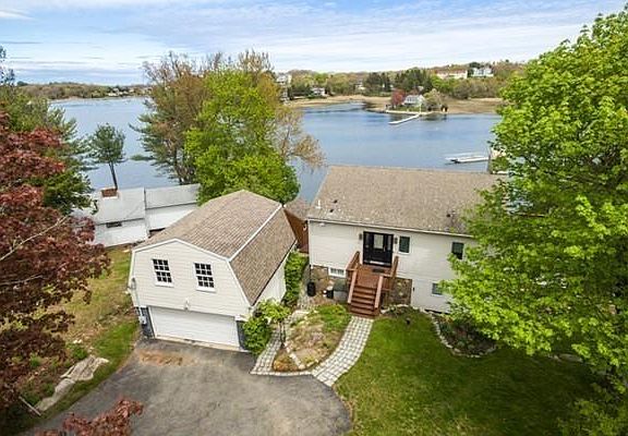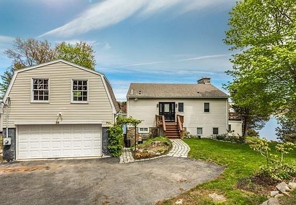 DIRECT RIVERFRONT with DEEP WATER DOCK! Situated on Rust Island with panoramic views of the Annisquam River from nearly every window! The main level features an open floor plan: a custom kitchen with granite counters, Breakfast bar, pantry and dining area, a large living room with a gorgeous granite fireplace, and a wall of sliding glass windows to a balcony and a large wooden deck. The bedrooms are on the lower level, and all have amazing water views! The Master suite has a granite fireplace and tiled master bath with shower. Enjoy the separate sauna and custom decking leading to the dock and 12' X 16' float that can accomodate multiple boats! Detached 2-car garage with 2nd floor storage. Vacation year round on the Annisquam River!