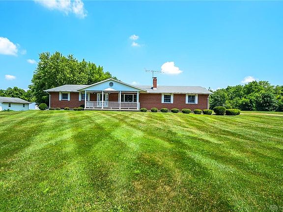 Nice Country Home on 5.7 acres (per County site) First time on the Market. Features: 3 bedrooms possibly 4. Two full baths , 2 car attached garage. Eat in kitchen, A huge guest room or whatever you want to use it for. A brick fire place in the living room with an insert. Also a brick fireplace in the full unfinished basement that has a mantel that came from a barn in New Lebanon, Ohio which was built in the 1800's. The fireplaces ARE NOT WARRANTED. A large deck on the back of the house.The Home is "BEING SOLD AS IS" Rely on your own Inspections. Seller will make No Repairs. This is a "Must See Home" Front porch across the front of the house to Relax and Enjoy the Country
