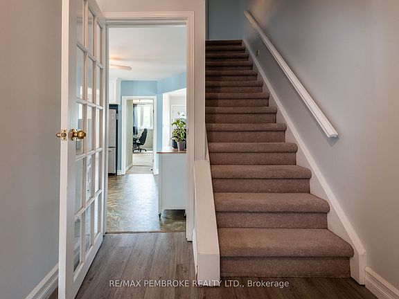 This charming home with fantastic curb appeal, ample parking and a fenced backyard. The main level features 2 bedrooms with a spacious kitchen, a formal dinning room and an updated bath with tile surround and convenient laundry. The living room opens to a covered porch and a landscaped backyard. The private primary bedroom is upstairs and the finished basement offers a rec room with a gas fireplace, 3-piece bath and loads of room for storage. The oversized insulated double garage completes this amazing home, that is in a prime location near Pembroke and Laurentian Valley amenities!