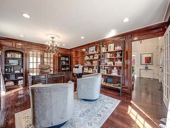 This pristine home located in The Ponds neighborhood of Lake Forest is filled with style and luxurious finishes from top to bottom. Inviting curb appeal, two-story foyer, beautiful hardwood floors, gorgeous millwork, stunning fixtures and sunlit rooms welcome you to this gorgeous home. Open concept kitchen with quartz countertops, custom tile backsplash, large center island, breakfast bar and high-end appliances. Bright eating area off the kitchen with oversize windows overlooks the private, wooded view, fully fenced backyard. Enjoy dinner parties in the elegant dining room, cozy up in the family room for game night, enjoy a good book in the reading room. Work from home in the handsome home office/library with French doors and floor to ceiling millwork that is warm and stately. Wonderful laundry/mudroom with access to both the garage and the backyard~perfect for your pets! Beautiful primary suite with walk in closet and sleek bathroom, three additional bedrooms with new wooden closet systems and second full bathroom complete the second floor. Fabulous basement living space with in-ceiling surround sound speakers and eco-friendly ethanol fireplace surrounded by custom stacked stone and wet bar. Meticulously maintained by the current owners you can move right in and enjoy this special home that is walking distance to three ponds and Waveland Park.