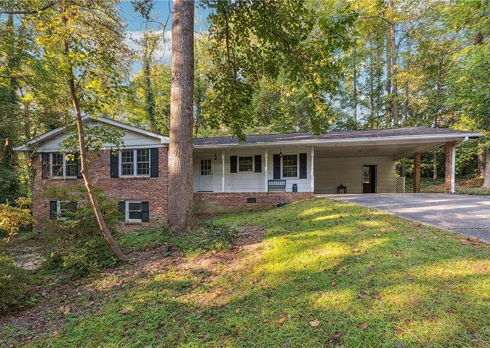Great location, Great neighborhood, Great Home for the 1st time home buyer OR investor. This 3br/2ba (4-sided brick) ranch has endless potential. The home sits perfectly on a corner lot with a walk out UNFINISHED DAYLIGHT BASEMENT that is plumbed for bath for future expansion. There is also a graded and gravel drive to the lower level, making a prime opportunity for a 2nd living quarters, separate from main level to generate income. Some of the home features include the family room with a wall of windows to allow plenty of natural light, a cozy den with brick fireplace, and an owner suite with walk in closet an en-suite bath. The rear patio is a quiet setting nestled in the woods with privacy to enjoy nature. This is the perfect home for 1st time homeowner wanting to raise a family in a nice friendly established community or someone wanting to downsize to 1 floor living. With some updating, this home will be a showstopper for investor to profit from as well. A similar sized home in the neighborhood, with finished basement (NOT UPDATED) just sold for 440K! This home is price to sell from an estate sell. Don't miss out on this amazing opportunity to own a great home in a highly desirable neighborhood with a prime location to I-285, I-20 making an easy commute to Atlanta. SOLD "AS IS", No disclosures, however: New gas water heater 2025, new sewer pipe to road 2025, hvac ~2012.