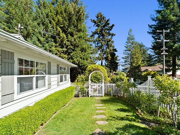 Nestled on a sunny, private half-acre lot in an enchanting redwood setting sits this immaculate 4 bedroom, 3 bathroom home with a resort-style back yard. The open-concept floor plan centers around a gorgeous chef's kitchen & a spacious dining room. The kitchen boasts custom cabinetry, granite countertops, a farmhouse sink & high-end SS appliances, including a stunning 6-burner 48-inch Viking range. The living room boasts sweeping mountain views & a cozy Waterford gas stove. The home seamlessly integrates with nature, featuring walls of windows and multiple doors that open to the wraparound deck. Two bedrooms & full baths (including the primary suite) are located on the ground level. Upstairs, you'll find two more bedrooms, a full bathroom & a loft. Tasteful finishes include maple hardwood floors, Emtek crystal door hardware, vintage-inspired lighting & plumbing fixtures & an adorable Dutch door. The oversized 2-car garage provides ample room for a workshop or hobby space. Additional amenities include dual-zone heating, air conditioning, water softener & central vacuum. The yard is beautifully landscaped with lawn, privacy hedges & a variety of flowering plants. Walking distance to award-winning SV schools, hiking trails & more. Turns out, you really can have it all!