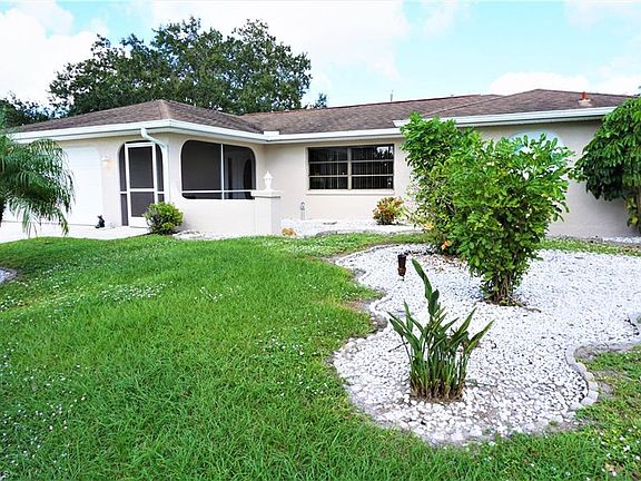 Cute as can be and Move in Ready! Spacious and well maintained home with a great yard. Featuring a screened front entry and a fantastic screened lanai so you can open up the windows and enjoy the Florida Fresh Air. A nice layout with a big family room that flows into the dining room with sliders that open up to the screened lanai and split bedrooms for privacy.. The kitchen has a pass through window to the lanai, great for entertaining. Plenty of counter space for meal prep, and lots of solid wood cabinets for storage. Off of the kitchen is a dinette and additional living room with sliders to the lanai. The Master bedroom has walk in closets and room for a large bed. Bright master bath has a big tiled shower and linen closet. The 2nd bedroom is a nice size with a walk in closet and a separate bathroom. Tile flooring throughout the entire home for easy maintenance plus ceiling fans in every room. You will really enjoy the large screened lanai and the nicely landscaped big yard. 2 Car garage gives you covered parking or additional storage plus a nice area to do the laundry. Conveniently located in the heart of Beautiful Port Charlotte and close to everything you need.