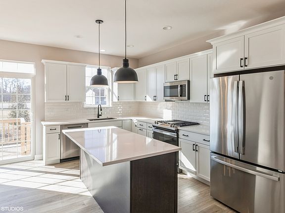 Welcome to The Villas at Madison Lane, a stunning new construction community perfectly situated in Elgin! This highly sought-after Ranch Duplex with an English Basement features 3 bedrooms, 3 full bathrooms, and 1,600 square feet of beautifully designed, open-concept living space. Step inside to be greeted by an abundance of natural light and a thoughtfully designed living area with soaring 9' ceilings and luxury vinyl plank flooring throughout the main level. The heart of the home, the kitchen, boasts GE stainless steel appliances, sleek quartz countertops, a stylish tiled backsplash, and 36" soft-close cabinets with crown molding. The large eat-in island seamlessly connects to the family room, making it perfect for entertaining or enjoying everyday moments. The spacious primary suite offers a serene retreat, complete with a large walk-in closet and a spa-like en-suite bathroom featuring upgraded finishes, 12x24 ceramic tile, a double vanity with cultured marble countertops, and premium Moen fixtures / black accent finishes. A versatile carpeted secondary bedroom, a full hall bathroom, and a generously-sized laundry/mudroom round out the main level. Step outside onto the spacious deck, an ideal spot to unwind and enjoy views of the backyard. The English/Lookout basement is bathed in sunlight and offers incredible flexibility with a third carpeted bedroom, a full bathroom, and a bonus living area perfect for a home gym, recreation room, or additional entertaining space. Located just minutes from major expressways, shopping, dining, grocery stores, and more, this property combines convenience with modern luxury. Don't miss this incredible opportunity-schedule your tour today!
