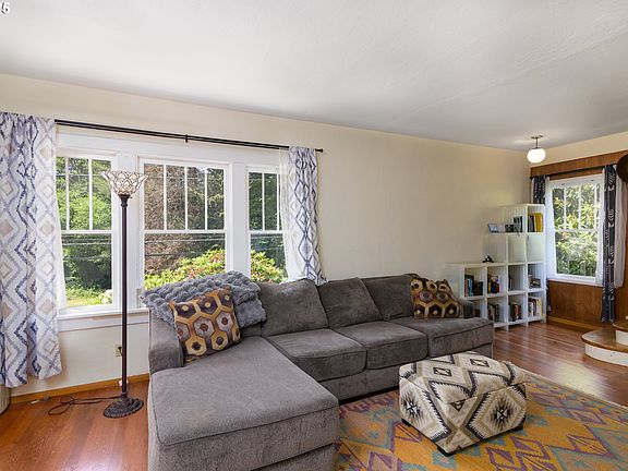 What a wonderful spot for you and your family to call home—or a great opportunity for a possible short-term rental! // Just across the street, enjoy the walking trails, playground, and swimming pool at Mingus Park—or take a short stroll to the Farmer’s Market, local restaurants, and the Coos Bay boardwalk // This charming turn-of-the-century home retains its historic character with original wood floors, beautiful staircase, built in cupboards, and select original windows // Thoughtful updates include a new roof in 2017, updated vinyl windows, and improvements to the electrical and plumbing systems //The main level features a spacious living room, formal dining area, kitchen, laundry room, full bathroom, and the first bedroom // Upstairs offers two generously sized bedrooms, a shared sitting area, and abundant built-in storage // The beautifully landscaped yard includes a garden boardwalk leading to a peaceful viewing platform // Ample parking is available in the driveway and in front of the two-car garage // With its prime location and timeless charm, this home offers both comfort and income potential // 720sf basement with access from inside the house and a separate ground level entrance